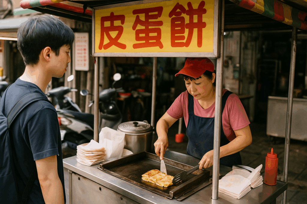 台湾のローカルな朝食店や屋台では、メニューが全て中国語表記で、英語が通じない場合も多く、初めての方は 台湾 蛋餅の注文方法に不安を感じるかもしれません。