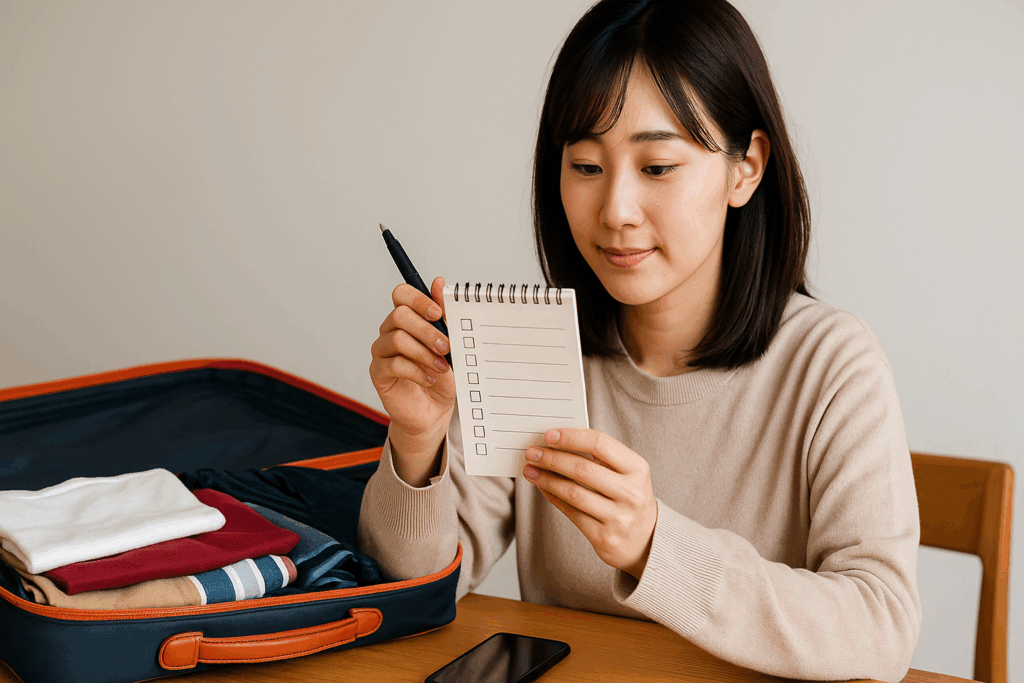 忘れ物がないか不安な方へ、出発直前に確認したい最小限のチェックリストです。